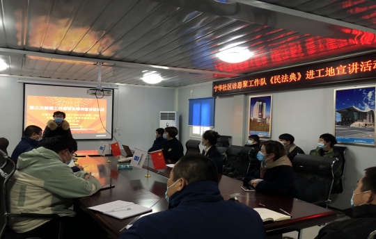 马克思主义学院与驻宁华社区“访惠聚”工作队、新疆第三建设工程有限公司华海项目部联合开展《民法典》进社区进企业活动。学院教师善托娅向社区群众和企业职工进行了题为《学习民法典 构建和谐社会》的法律知识讲座。