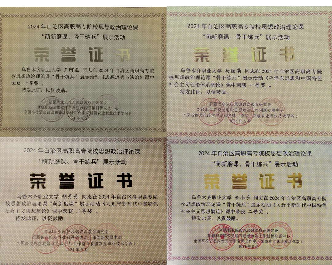 我校马克思主义学院教师在新疆职业院校思想政治教育研究会组织开展的自治区高职高专院校思想政治理论课“萌新磨课、骨干练兵”展示活动中喜获佳绩。